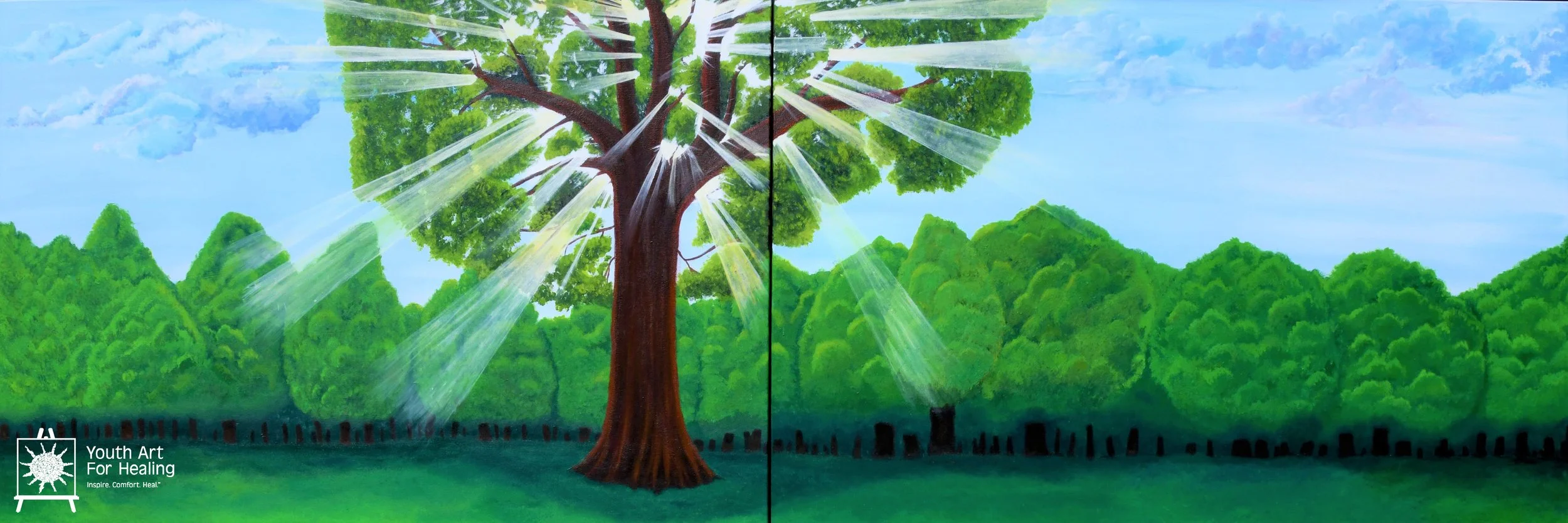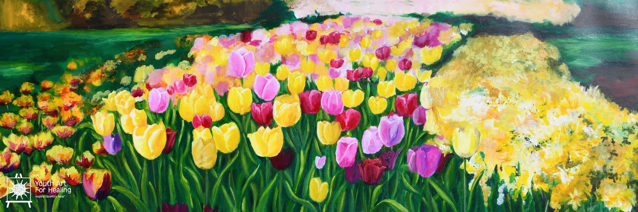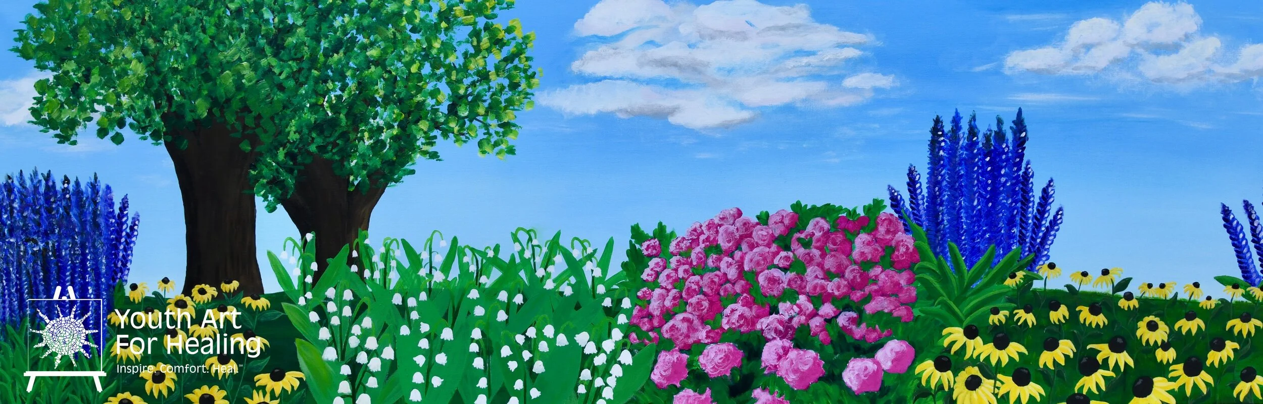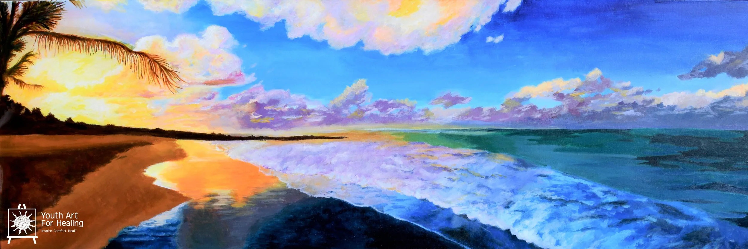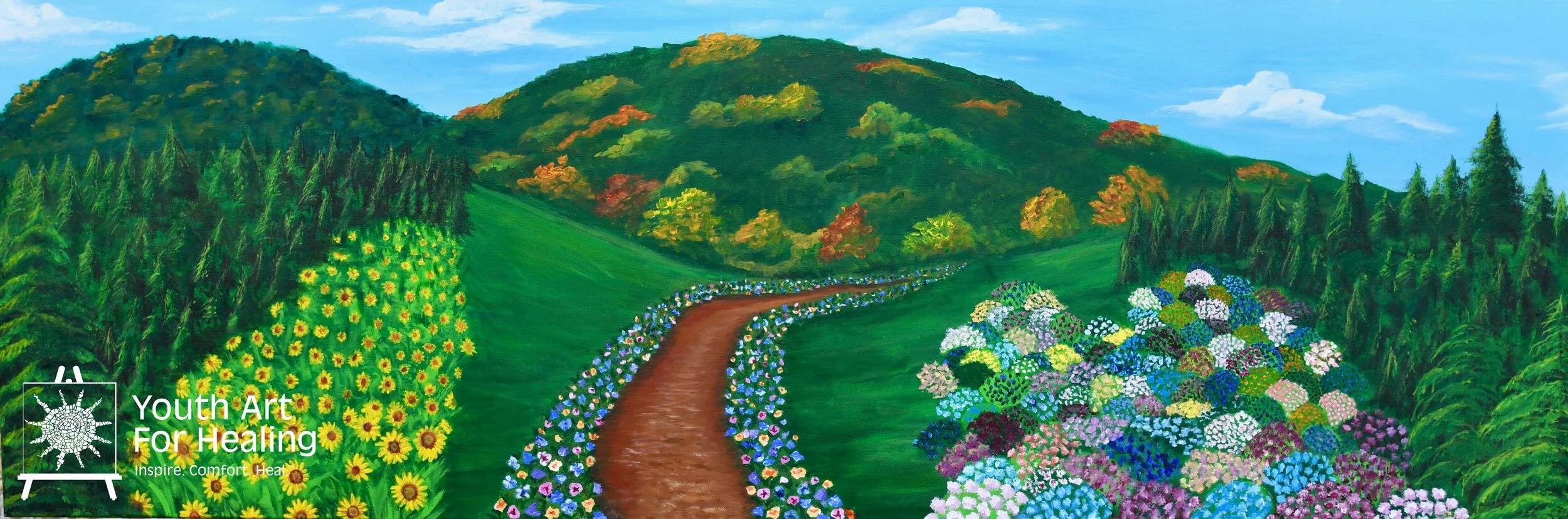 Across the years, YAFH paintings have been square, portrait, and landscape, all in a variety of canvas sizes. When our healthcare partners wanted paintings to fill bigger spaces, they would sometimes request that our student artists create larger paintings. Often, two or more students would work together to create these larger works of art. The students had to learn how to collaborate and the end results always turned out to be amazing!