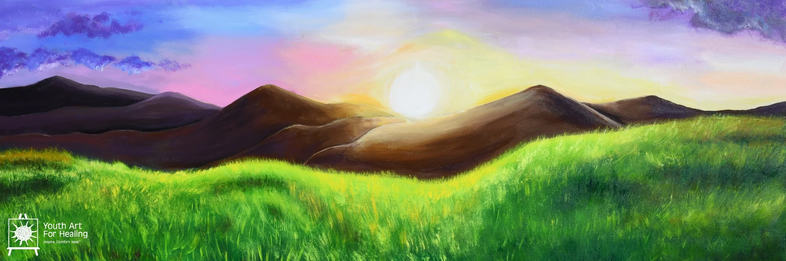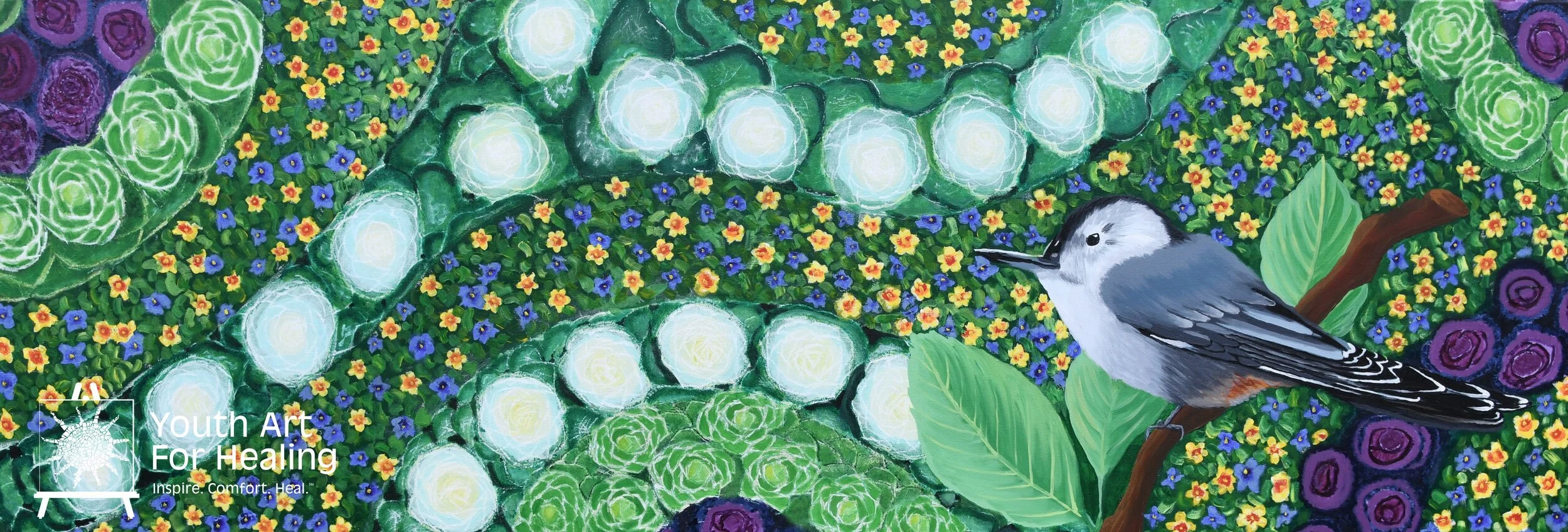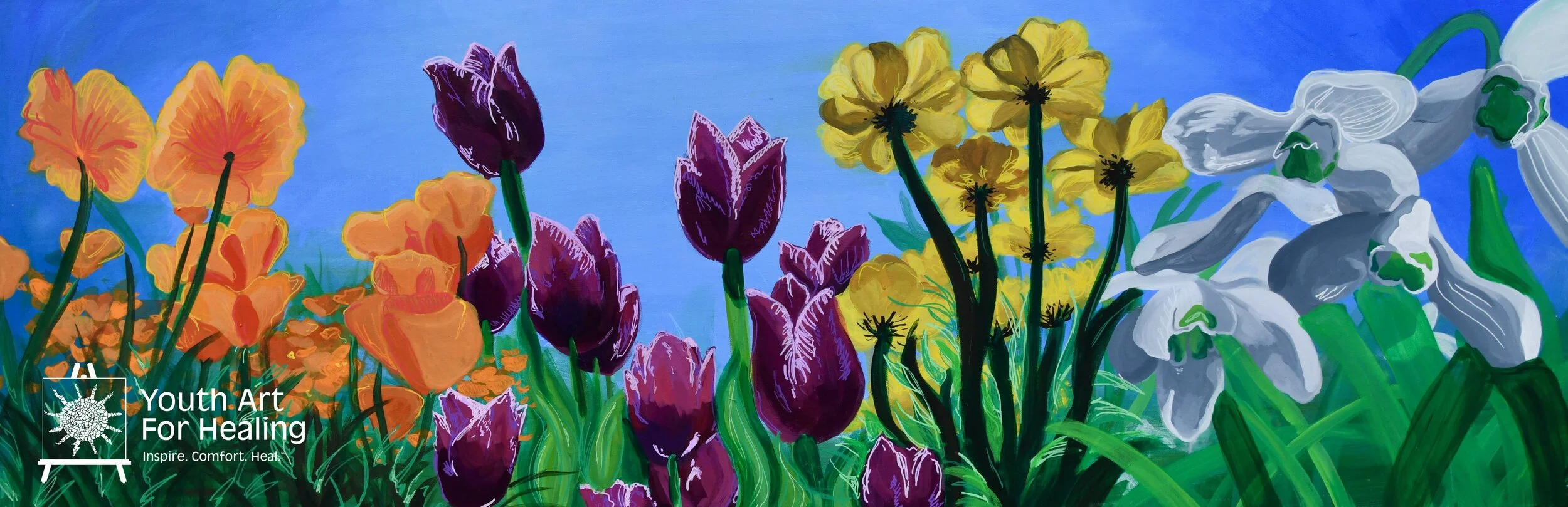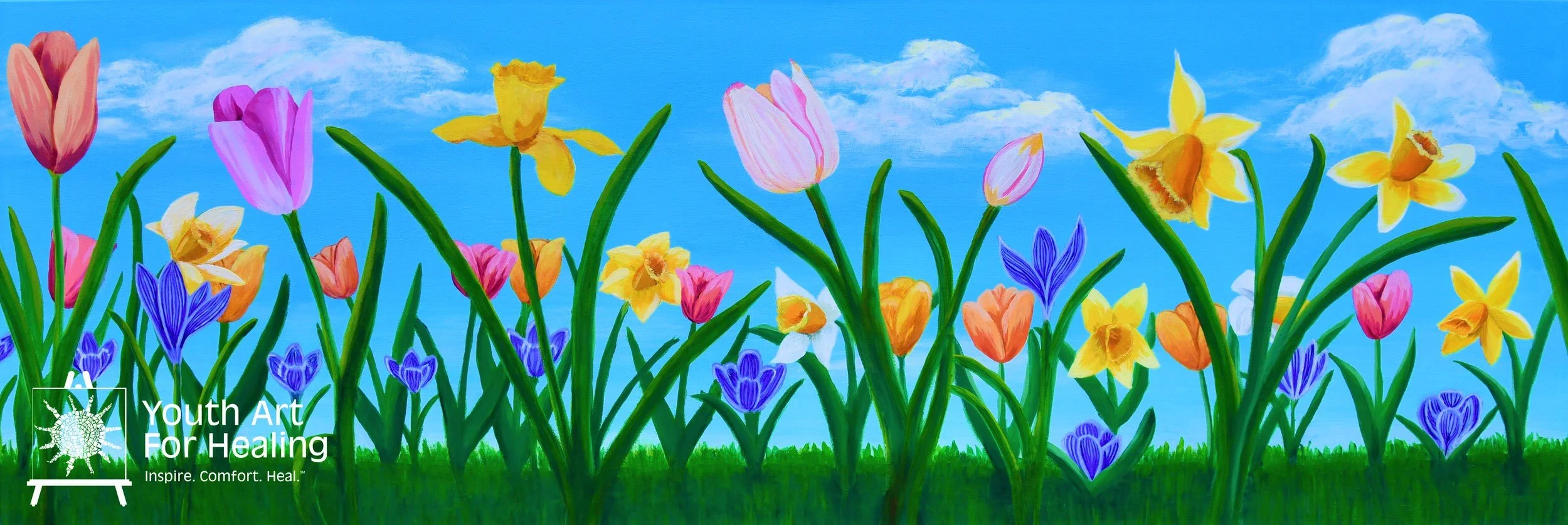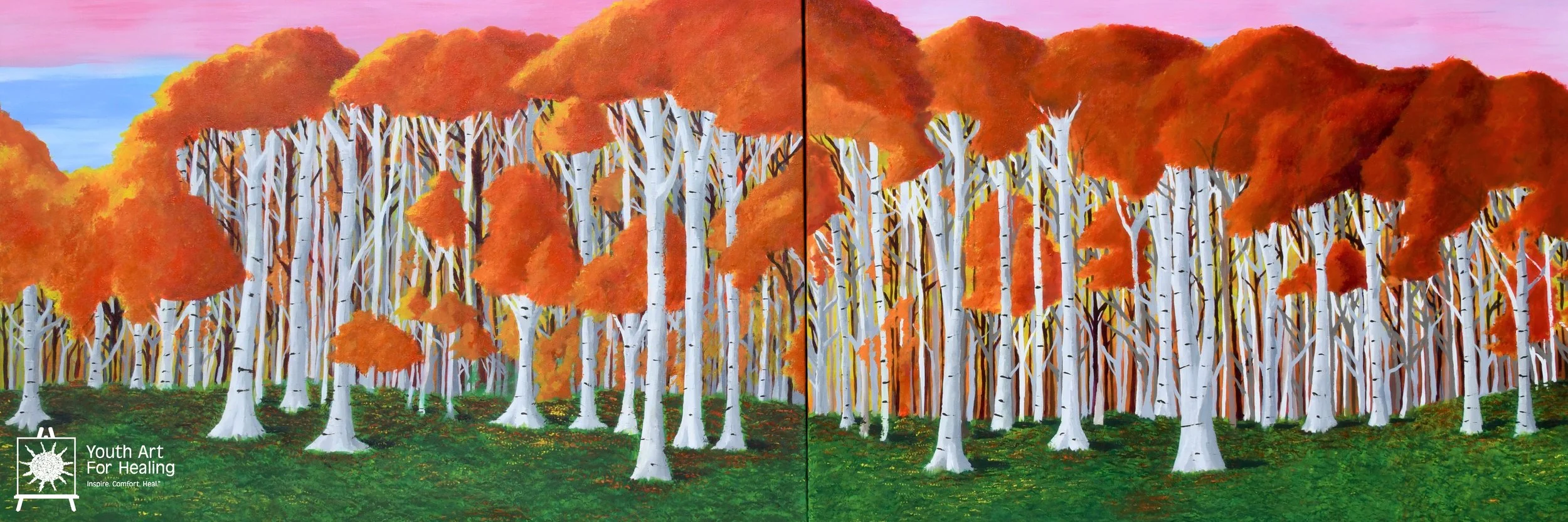 Across the years, YAFH paintings have been square, portrait, and landscape, all in a variety of canvas sizes. When our healthcare partners wanted paintings to fill bigger spaces, they would sometimes request that our student artists create larger paintings. Often, two or more students would work together to create these larger works of art. The students had to learn how to collaborate and the end results always turned out to be amazing!