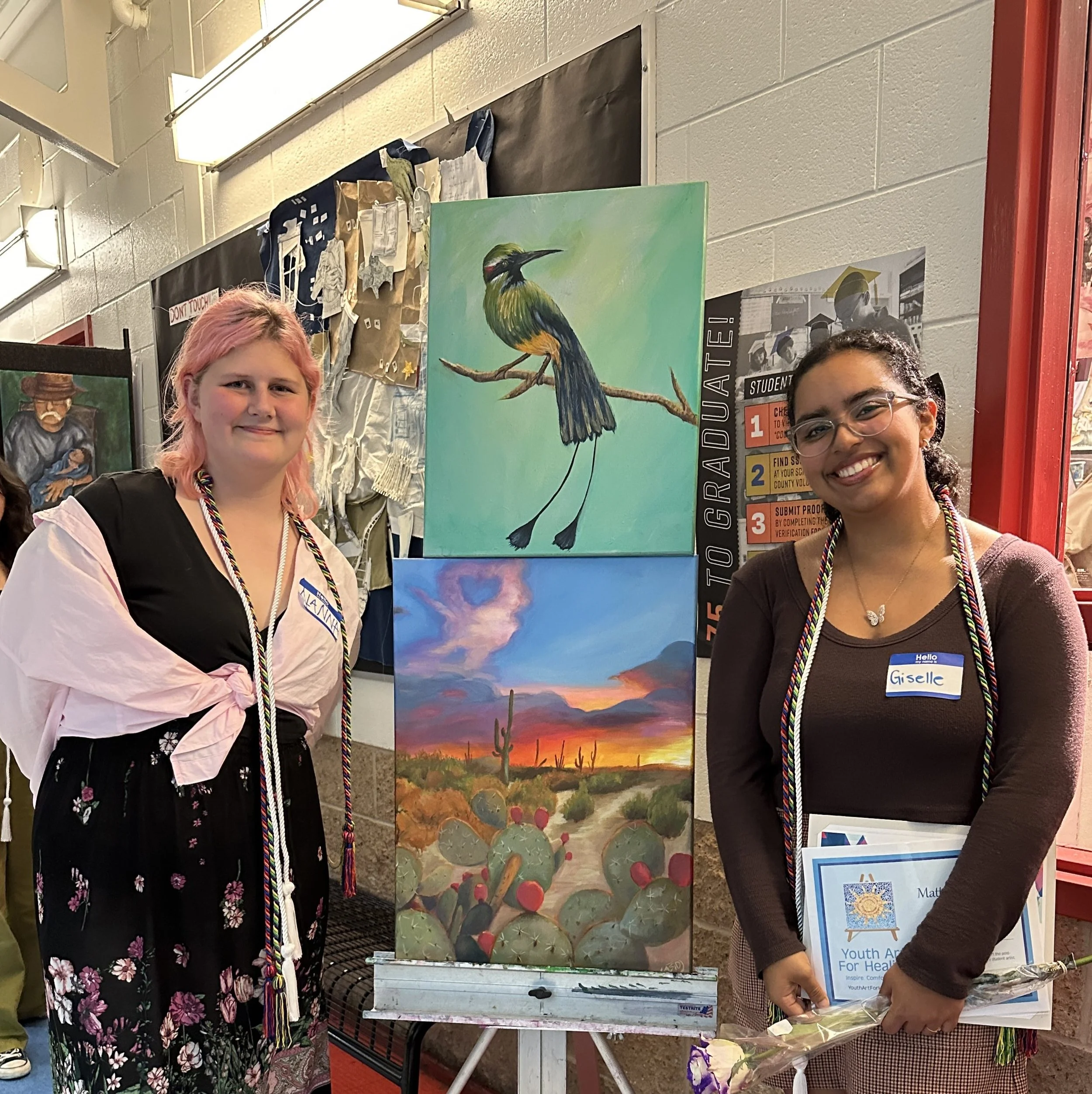 Alanna Sidlowski (left) and Giselle Maravilla (right) pictured with the paintings they submitted to YAFH.