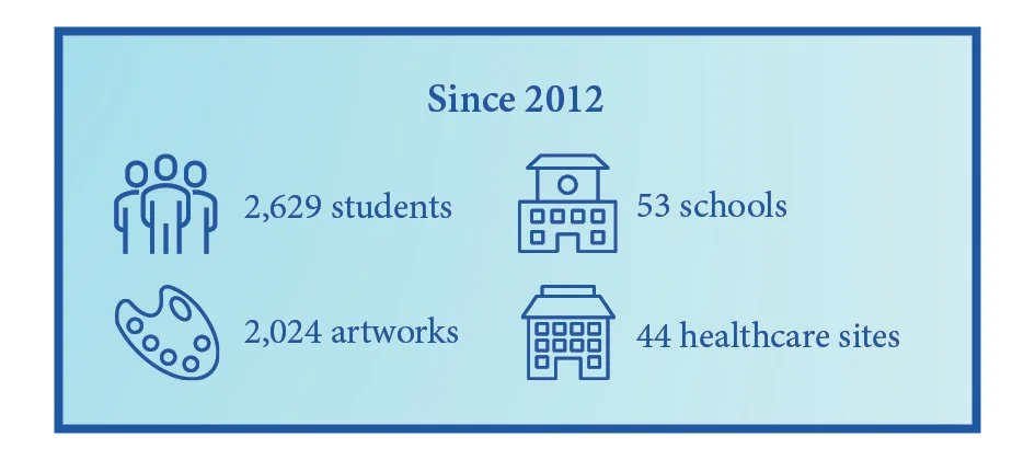 For the third year in a row, student artists are creating Gifts of Gratitude paintings for our frontline healthcare heroes who remain dedicated to caring for COVID-19 patients. We have also been able to work with our healthcare partners to expand our site-based projects once more, in line with our original program model. We are excited to be coordinating artwork for permanent installation in a greater number of clinics, hospitals, and medical offices once again.